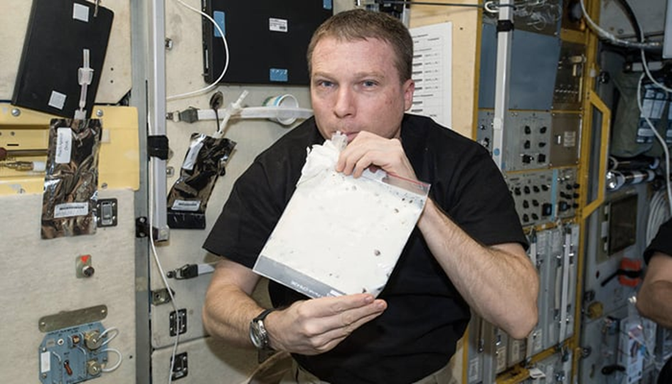 Obr. č. 8 Astronaut Terry Virts pije 3D tlačený mliečny koktail na Medzinárodnej vesmírnej stanici (Foto: NASA – Mark Garcia).